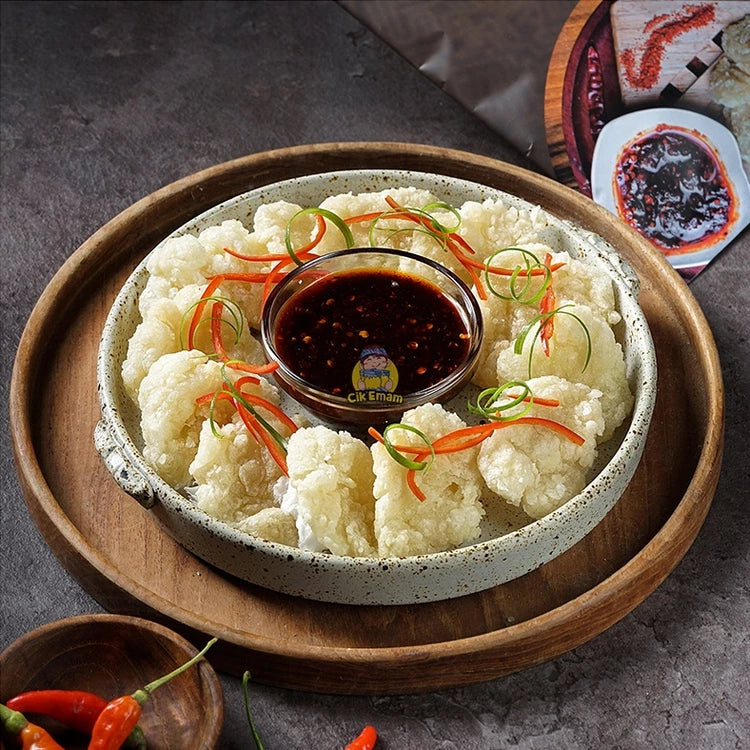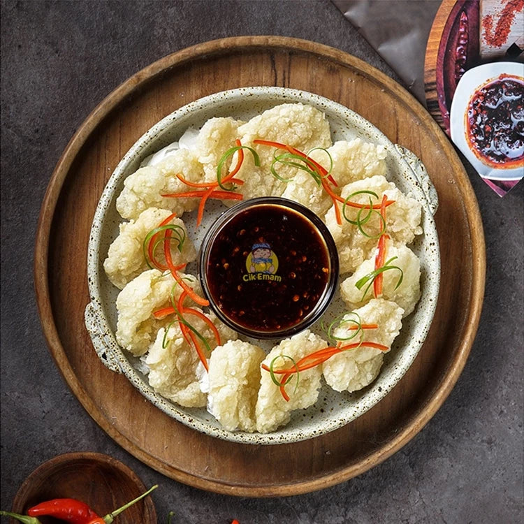 Cara penyajian gampang banget — goreng, tabur bubuk, cocol ke saus rujak, dan nikmatin sensasi crispy pedas gurihnya! 🌶️